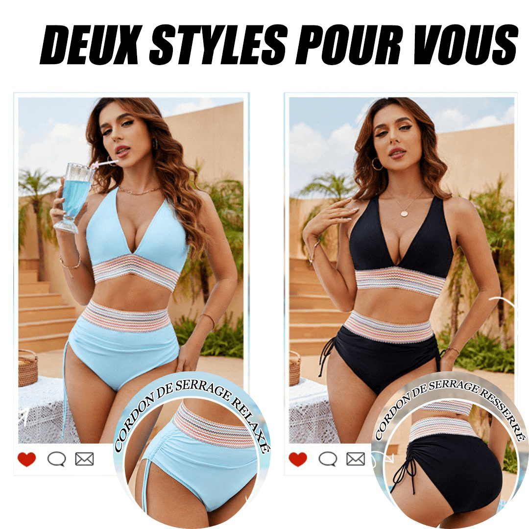 The high waisted bikini features tummy control, ruching, drawstring and wide waistband, creating a slimming effect and highlighting your waist. With moderate coverage, you can feel confident and comfortable.